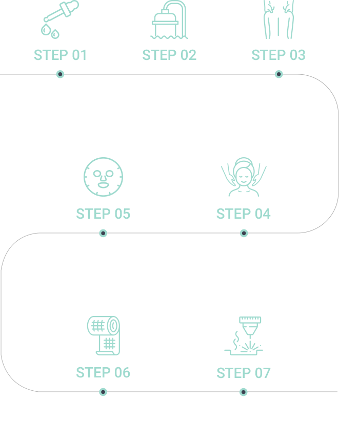 TSのリムトックスプログラムは、アロマを利用して深い呼吸を助ける リラックスの段階から、循環と解毒を助けるディテールな管理を行うことで 手術後、胸の形がよりキレイに定着できるように助け、触感もより 滑らかにするプログラムになります。