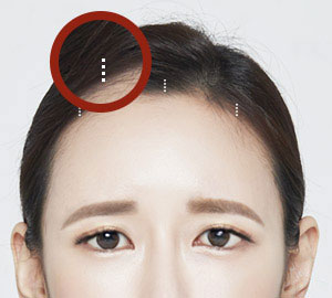 傷跡が見えないように ヘアラインの内側へ 1cm以内で切開します。