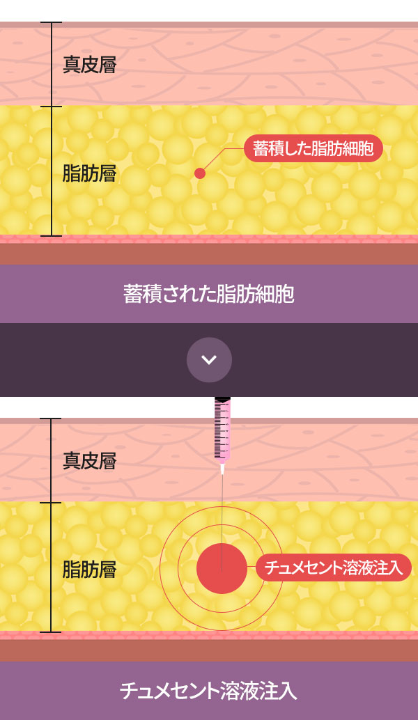 STEP 01. チュメセント溶液注入で、脂肪細胞破壊