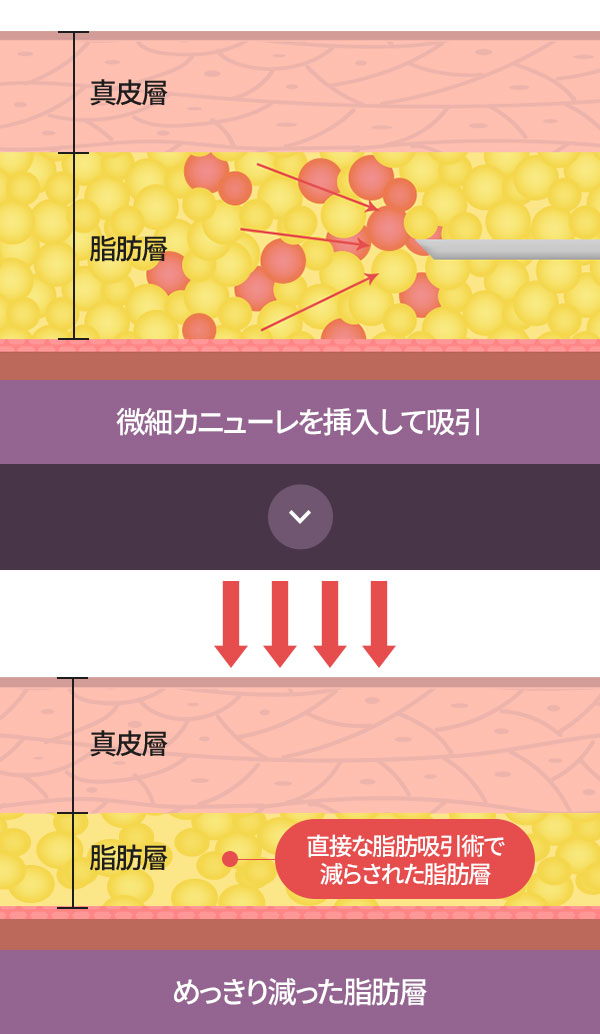 脂肪吸引手術は、単純に脂肪を除去するだけでなく 脂肪層の吸引を通し、ボディーラインを矯正します。