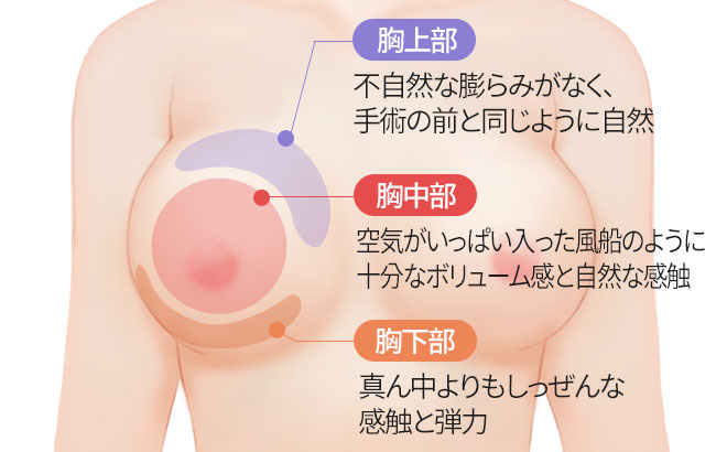 横になった時も、生れ付きの胸のように自然に広がり、本物に似ている形と動きに