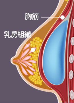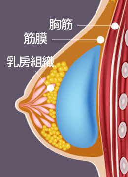 アンダーライン切開胸のアンダーラインに小さく 切開する方法で 回復が早く、保形物の挿入位置を 正確に決められる長所があります。