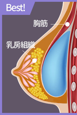 TSのデュアルプレイン(二重平面方法)胸手術は 自然ながら柔らかい感触を作り上げる方法です。