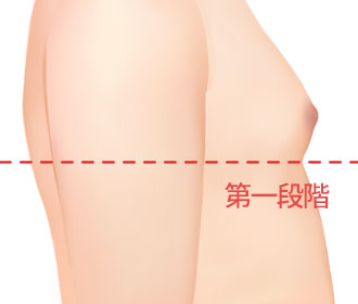 乳輪の周りに2~3㎝の切開線を開き 乳腺組織を直接切開することで 女性化乳房症を矯正します。