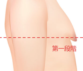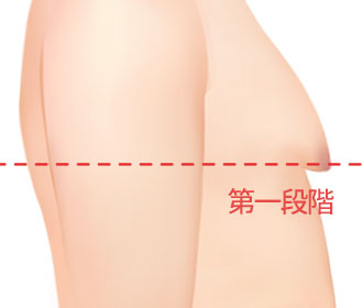 乳房下のラインを基準に、どの程度垂れて出ているか、