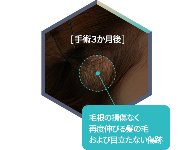 毛根の損傷なく、頭皮内内側1~2㎝程度を切り 追って発生しうる傷跡防止!