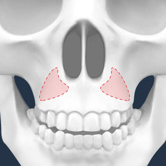 口内を僅かに切り、鼻孔の外側を剥離し、個々人の輪郭の形に合わせて作られた保形物を挿入します。 しっかり固定してから口内の切開部分を縫合し、ボリューム感と立体感のある顔に完成させます。