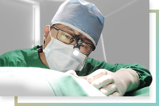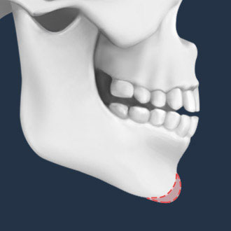 口内を通して骨膜を切開し、保形物が入る空間を確保してから、個々人の顎の形に合わせて作られた保形物を消毒してから顎先に挿入、固定し、口内の切開部分を縫合します。