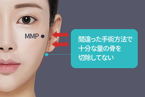 頬骨の一番突出しているMMP部位を含んで切ることで 頬骨の縮小効果を最大に引き上げる