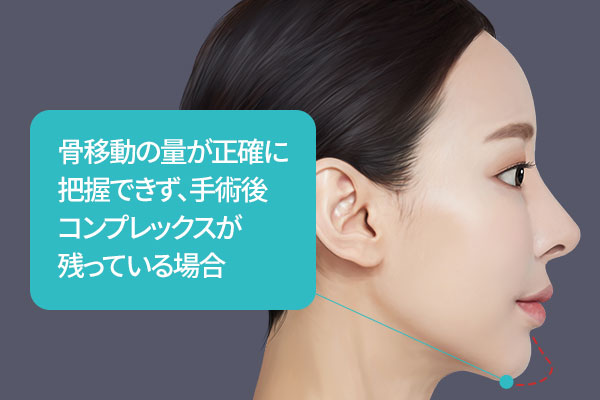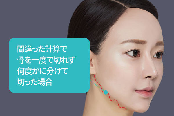 顔面輪郭再手術、ほとんどの原因は切りが足りない(効果が少ない)、または切り過ぎ(二次角、非対称)にあります。 TSでは、失敗原因の正確な分析を通し、経験が豊富な専門医の執刀2次再手術を防止しています。