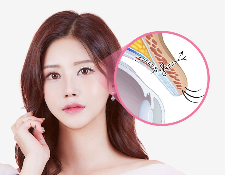皮膚と眼輪筋を縛り 自然なラインを 作ります。