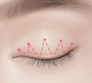 5つのポイントを繋げ 癒着を形成し、よく取れない しっかりした二重ラインを作り上げます。