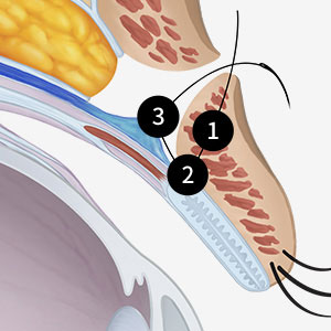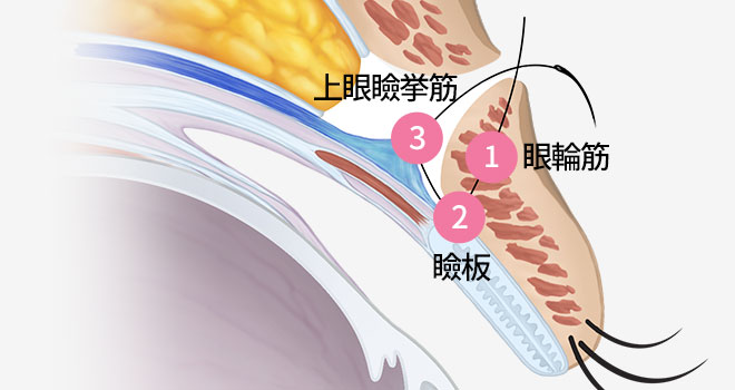 - 3上眼瞼挙筋の延長部分に固定
