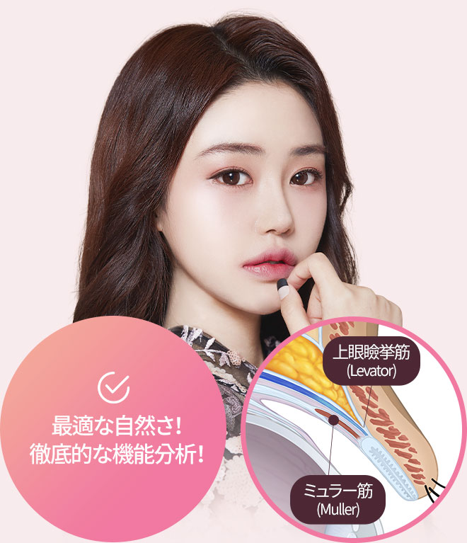 目つきを左右する2つの筋肉の分析を通し 徹底的な機能テストで最も理想的な目を探し出します。