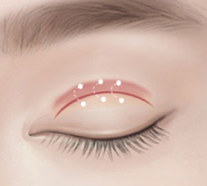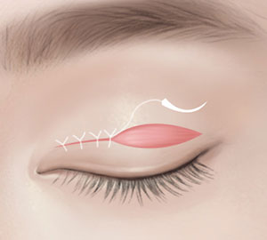 瞼を切開してから、メイン筋肉の 上眼瞼筋を強化させ 瞳をパッチリさせる手術 |