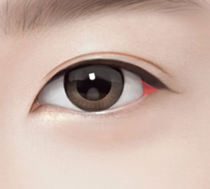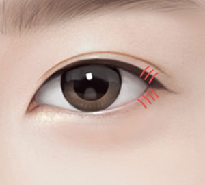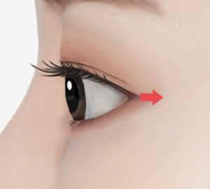 - 目の外側、下の方を下し狭いまたは上がった目を改善