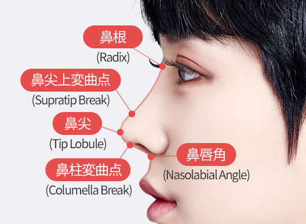 鼻のラインを決定する5つの角度を調整