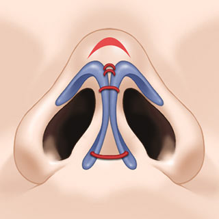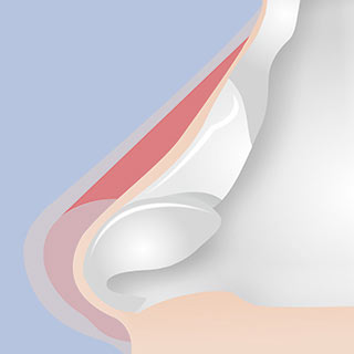 鼻の内側から切開し 鼻翼軟骨と鼻中隔軟骨を 分離し、新しい軟骨を 挿入する空間を確保します。