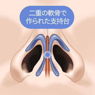 垂れ防止二重の軟骨で支持台を 作り上げ、鼻尖の垂れ 及び変形防止