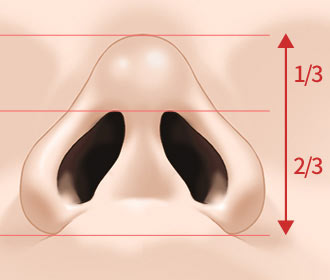 鼻の先が広く見える場合。 - 鼻が顔の比率に合わないように、